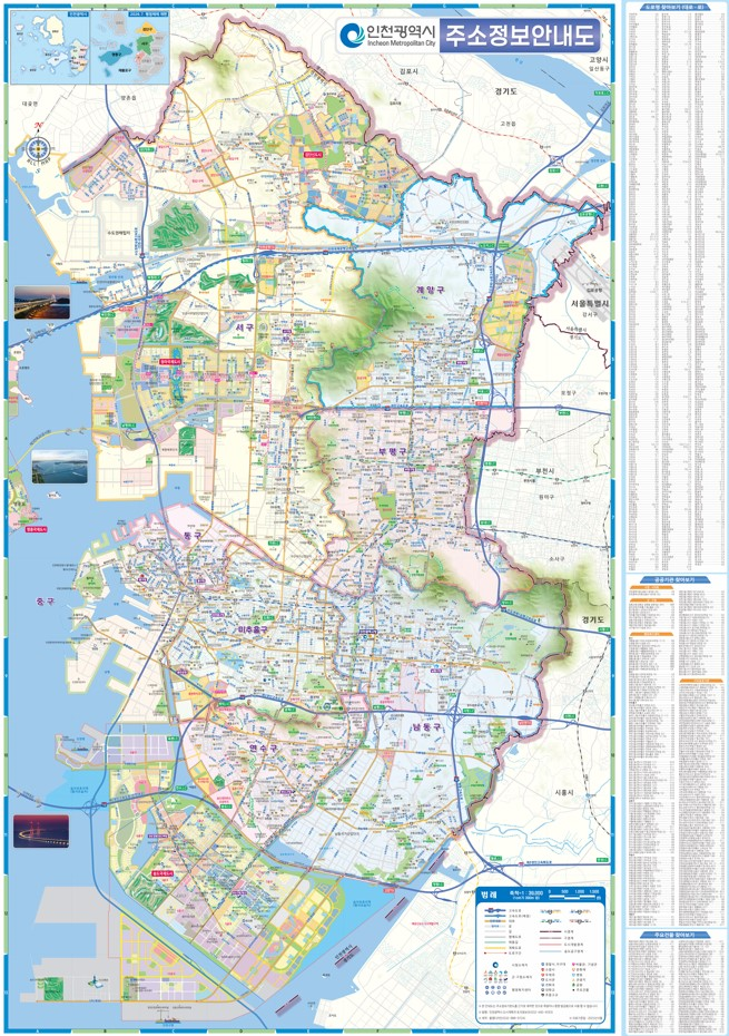 또한 인천시 전체 도로명을 한눈에 볼 수 있도록 주소정보 관리시스템 자료를 반영하여 제작됐다. 주요 내용으로는 ▲바다 관광객을 위한 ‘I-바다패스’ 이용 안내, ▲역사적 인물과 문화적 의미를 반영한 명예도로명, ▲야간 이용이 어려웠던 산책로 등 취약지역에 설치된 조명형 주소정보시설(에움길), ▲인천과 수도권을 연결하는 전철 노선도 등이 함께 수록했다.