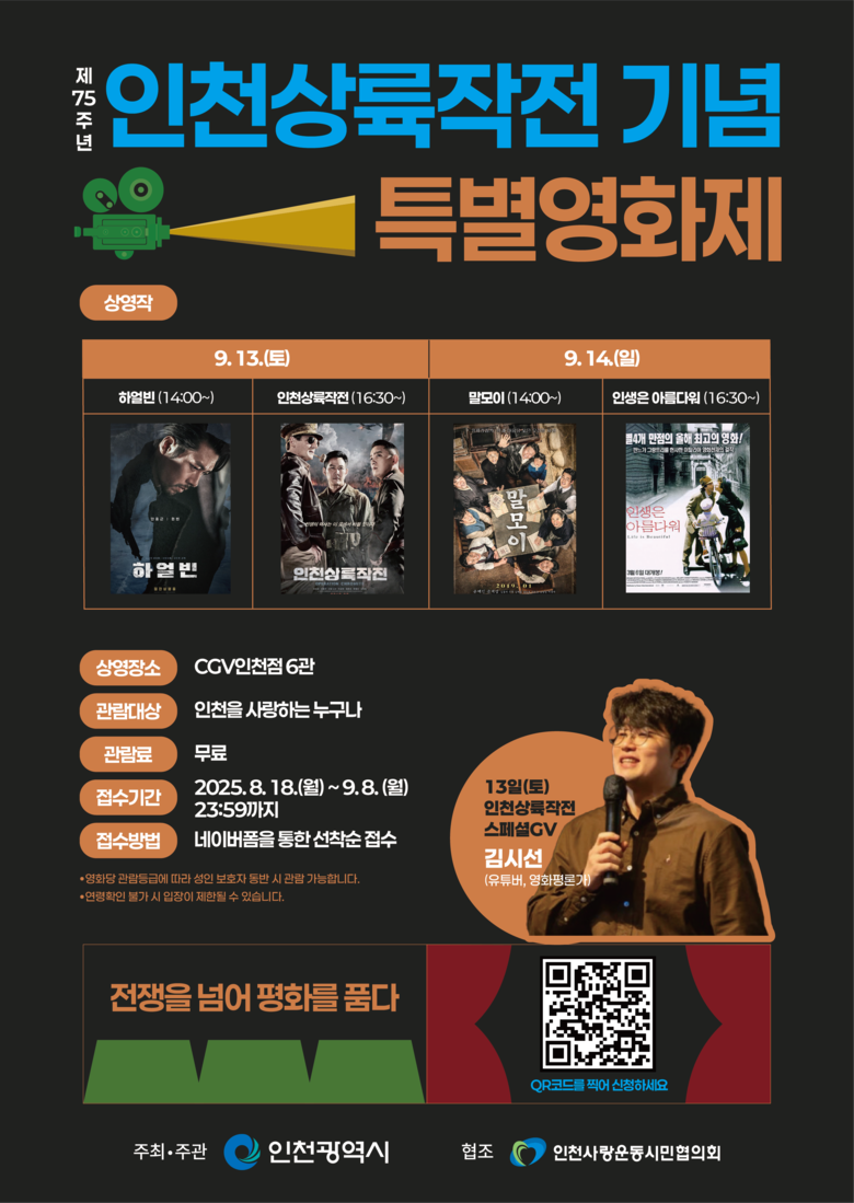 이번 특별영화제는 인천상륙작전의 역사적 의미를 되새기고, 시민과 함께 평화와 화합의 메시지를 나누기 위해 마련됐다.