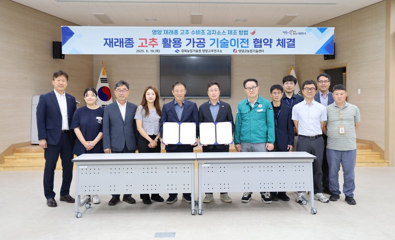 기술이전받은 영양군농업기술센터는 농산물가공지원센터를 운영하며, 가공제품 생산 장비와 시제품 제작 인프라를 활용해 농가 교육과 제품화를 지원하고 있으며, 이번 기술이전으로 창업 활성화와 지역 고추 소비 확대 등 실질적인 경제 효과가 기대된다.