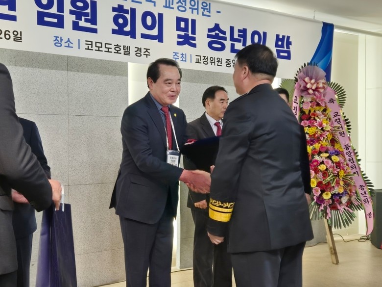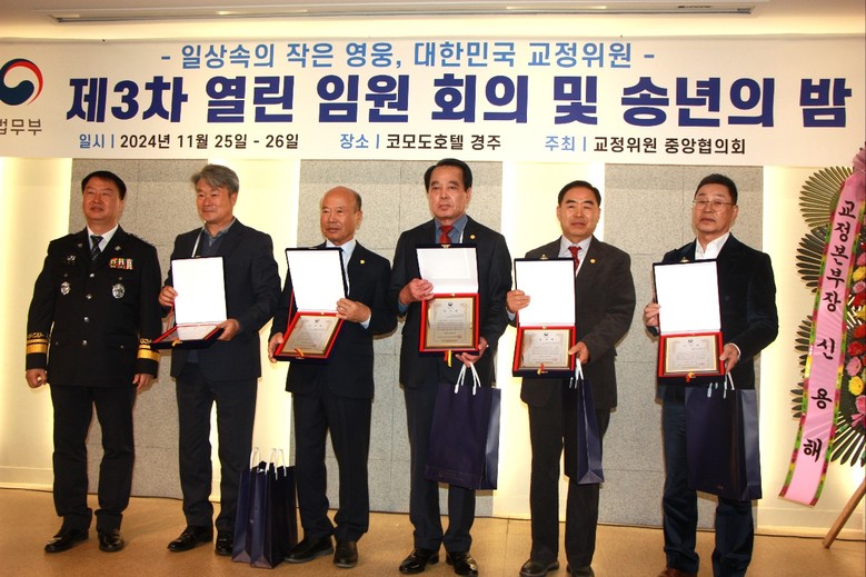 [세계타임즈]최성룡기자 = (사)마산·함안·의령 범죄피해자지원센터 김종식 사무처장은 지난 25일 1박 2일 일정으로 경주 코모도호텔에서 “제3차 열린 임원회의 및 송년의 밤 행사에서 수용자 교정교화와 사회복귀에 공헌한 교정위원들에 대한 포상식에서 “법무부 교정본부장 감사패”를 수상했다.