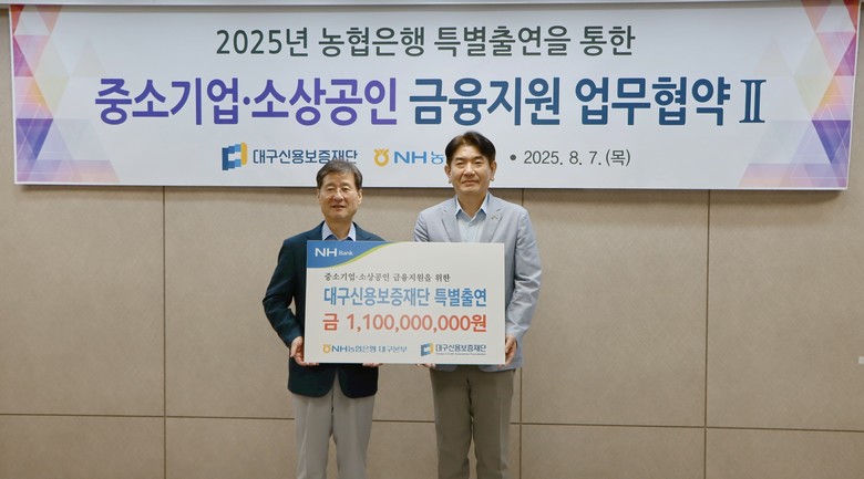 대구신보와 농협은행은 지난 7일(목) 재단 본점에서 중소기업·소상공인 금융지원 업무협약을 체결했다. 협약에 따라 농협은행이 대구신보에 11억 원을 특별출연하고, 대구신보는 출연금의 15배인 165억 원 규모의 협약보증을 시행한다.