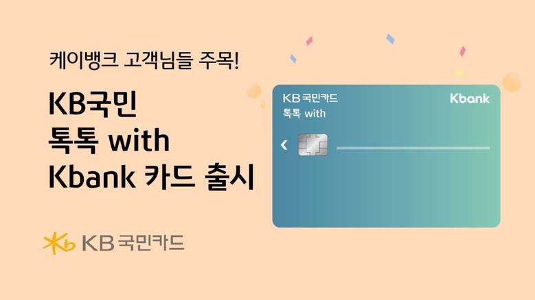 ‘KB국민 톡톡 with Kbank 카드’는 ▲스타벅스에서 50% 할인 ▲OTT 구독 서비스(유튜브 프리미엄, 넷플릭스, 웨이브 티빙) 20% 할인 ▲온라인 간편결제(KB Pay, 삼성페이, 카카오페이, 네이버 페이 등 10여종) 10% 할인 ▲배달앱(배달의 민족, 요기요) 5% 할인 ▲대중교통 5% 할인 등 다양한 생활 영역에서 전월 이용실적 40만원 이상이면 월 최대 2만 4천원까지 할인 혜택을 제공한다.