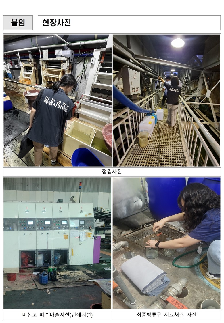 인천시는 이번 단속에서 적발된 사업장에 대해 고의성 여부 등을 철저히 수사한 뒤, 물환경보전법 위반 혐의로 검찰에 송치할 계획이다. 또한 관할 행정기관과 협력해 경고, 과태료 및 개선명령 등의 행정처분도 병행할 방침이다.