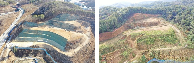 | ▲ 용인특례시가 원상복구 명령을 내린 산지의 전(왼쪽)과 후(오른쪽) 모습 |