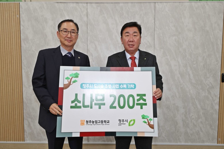 [충북 세계타임즈=이현진 기자] 청주농업고등학교(교장 고종현)는 22일(금), 청주시(시장 이범석)와 청주시 도시숲 조성 사업을 위한 동근 소나무 200주를 기탁하고 청주시청 임시청사 직지실에서 기탁식을 진행했다.