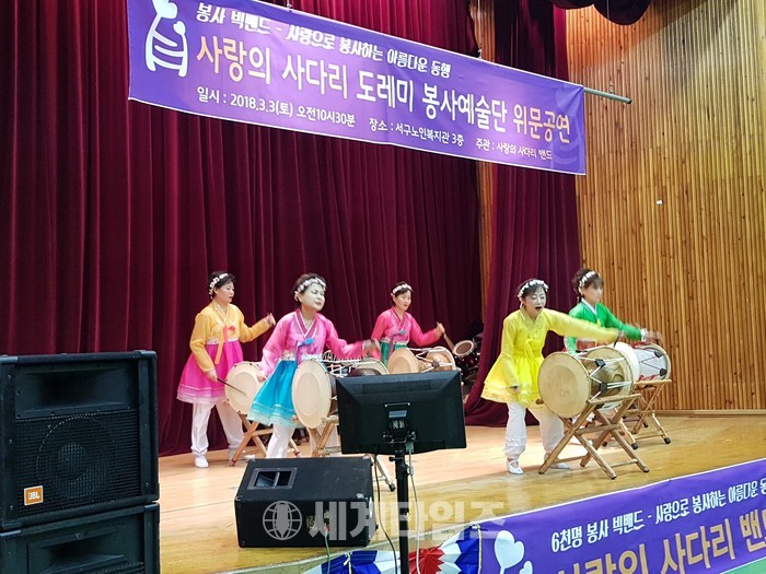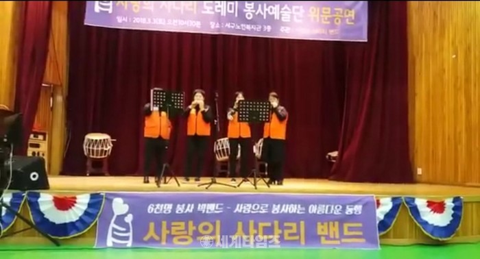 [대전=세계타임즈 이장성 기자] 다양한 봉사를 하고 있는 SNS 6천명 봉사단체 사랑의 사다리 밴드(리더 이정제)의 도레미봉사예술단(단장 안경헌)은 3일 오전10시부터 서구노인복지관에서 100여명의 어르신들께 위문공연봉사로 사회적효행을 실천하였다