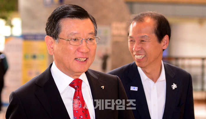 한국방문위원회 위원장인 박삼구(왼쪽) 금호아시아나그룹 회장이 최문순 강원지사와 함께 18일 오전 서울 강서구 김포공항을 통해 출국하고 있다. 2017.05.18.