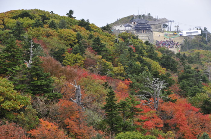 곤도라 타고 덕유산을 즐길 수 있는 무주덕유산리조트무주의 휴양 명소인 덕유산은 계곡의 맑은 물과 수천 그루의 나무가 가득한 숲속에서 가을의 정취를 느낄 수 있다. 덕유산의 자연경관을 즐길 수 있는 최적의 코스는 곤도라를 이용하는 것이다. 부영그룹이 운영하는 무주덕유산리조트에서 곤도라를 타고 설천봉까지 오를 수 있다. 설천봉(1,520m)부터 정상인 향적봉까지는 별도의 트레킹 장비가 필요없이 남녀노소 누구나 편하게 오를 수 있다.