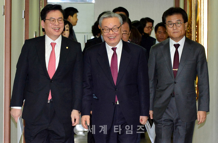 자유한국당 인명진(가운데) 비상대책위원장을 비롯한 비대위 위원들이 20일 오전 서울 여의도 자유한국당 당사에서 열린 비상대책위원회의에 참석하고 있다. 2017.02.20.