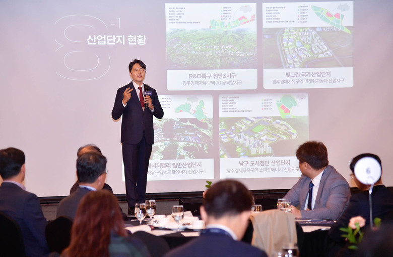 광주광역시(시장 강기정)는 27일 서울 그랜드인터컨티넨탈호텔에서 국내외 100여개 투자자들을 대상으로 광주 투자환경과 신산업 육성 및 지원 정책 등을 소개하는 투자환경설명회를 개최했다.