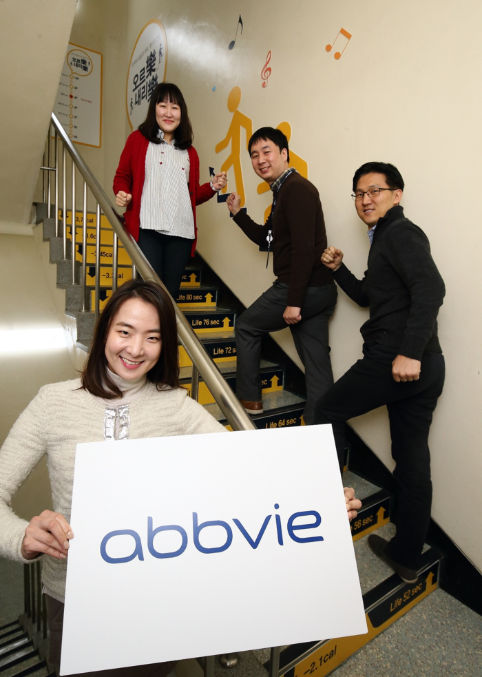 | ▲한국애브비 직원들이 건강계단을 오르며, 애브비 워크 캠페인에 참여하고 있다. |