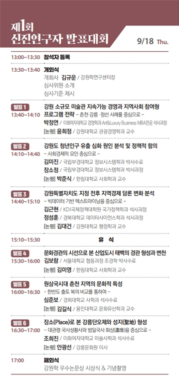 강원학연구센터 관계자는 “이번 발표대회는 강원 지역에 대한 젊은 연구자들의 참신한 시각과 학문적 가능성을 엿볼 수 있는 자리”라며 “강원학의 지속 가능한 발전을 위해 앞으로도 신진연구자들을 적극 발굴·지원할 계획”이라고 밝혔다.