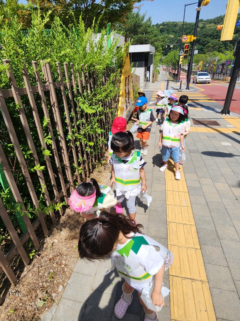 3,4세 유아들은 지킴이 활동으로 ‘플로킹’활동을 진행하였으며, 5세 유아들은 직접 우리 동네의 위험 요소를 찾아보고 개선 방법을 탐구했다.
