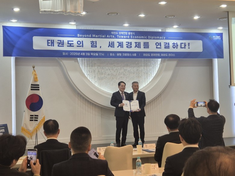 [세계타임즈]최성룡기자 = 태권도와 경제가 만나는 자리! 글로벌네트워크의 새로운 시작! 태권도 경제연합 출범식이 2025년 4월3일 (목)오후 5시 광명크로앙스 6층에서 가졌다.