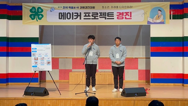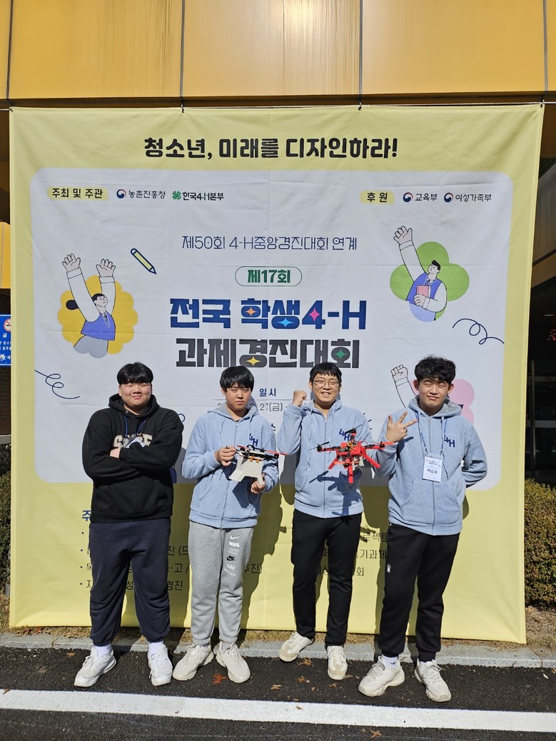 또한 ‘ 다용도 교체형 드론’을 제작하여 ‘FIY Makers’ 팀명으로 출전한 1학년 강동호, 허윤범 학생들도 동상을 수상하여 한국4-H본부 회장상을 받았다.