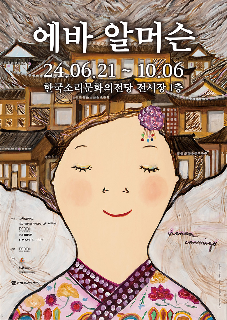 이번 전시는 그동안 볼 수 없었던 에바 알머슨의 다양한 예술 기법과 형식을 만나 볼 수 있는 자리로 유화, 드로잉, 도자기, 조각, 애니메이션 등 190여 점의 작품을 만나볼 수 있으며 특히 전주 전시 만을 위한 ‘전주’ 주제의 신작이 추가 구성되어 있단 점에서 남다른 관심을 받고 있다.