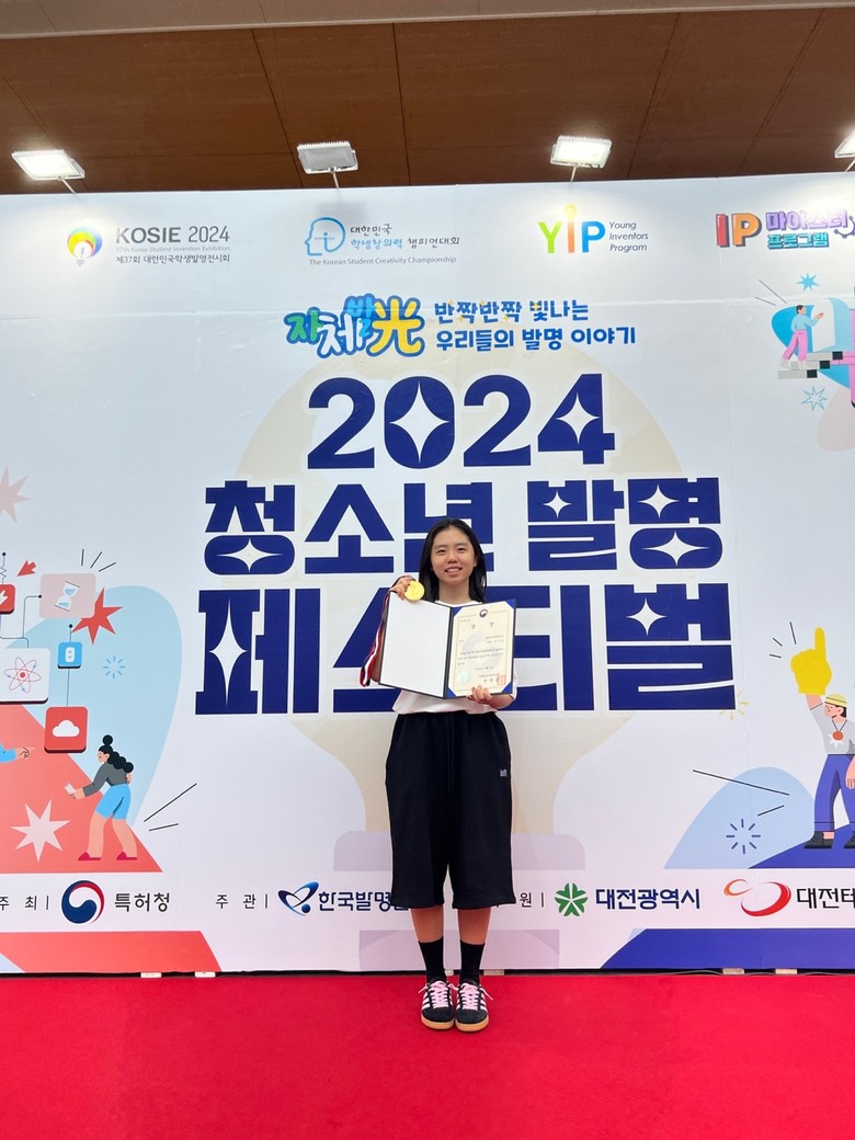 이번 대회에서 정아린(1학년), 유현준(2학년) 학생은 각각 금상과 동상을 수상하였다. 정아린 학생은 인공지능 기술을 활용한 ‘영상 인식 기반의 사회적 약자를 위한 엘리베이터 음성 안내 시스템’을 발명하여 금상(산업통상자원부장관상)을 수상하였으며, 유현준 학생은 ‘진공청소기 먼지통 머리카락 엉킴 방지링’을 발명하여 동상(한국무역협회장상)을 수상하였다. 이들을 지도한 김승현 교사는 우수 지도교사상(특허청장상)을 수상하였다.