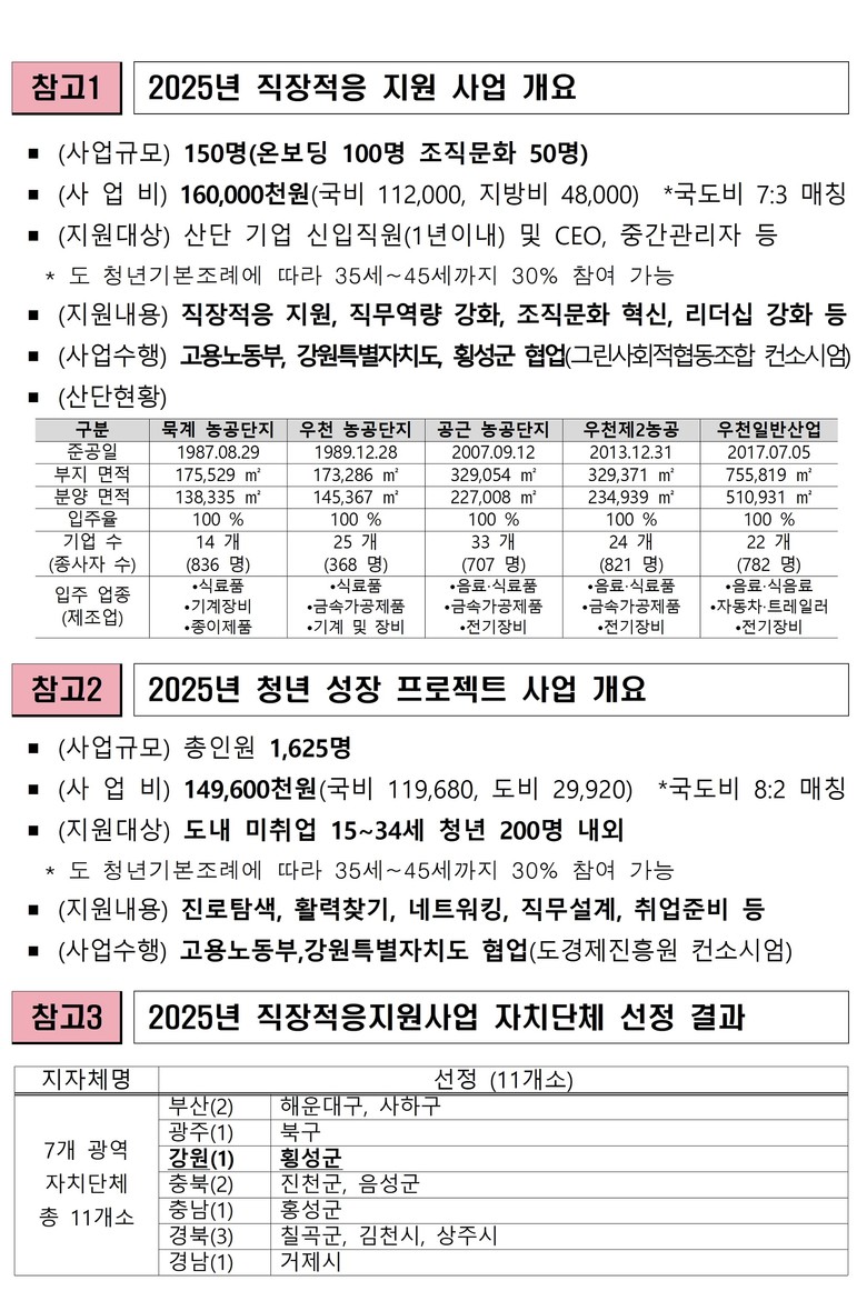 [강원도 세계타임즈=김민석 기자] 강원특별자치도(도지사 김진태)는 횡성군과 공동수행으로 신청한 고용노동부 주관 2025년 ‘직장적응 지원사업’ 공모에 선정되어, 국비 1억 1천만 원을 확보했다고 밝혔다.