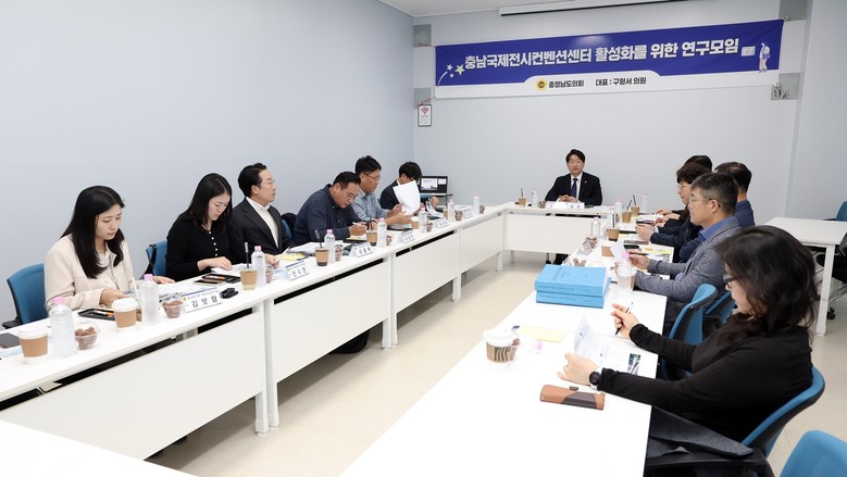 [충남 세계타임즈=이현진 기자] 충남도의회는 23일 ‘충남국제전시컨벤션센터 활성화를 위한 연구모임’(대표 구형서) 3차 회의 및 연구모임과 연계한 연구용역 최종보고회를 열고 컨벤션센터의 국제경쟁력 강화 전략을 모색했다.