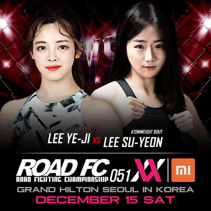 한편 ROAD FC는 12월 15일 그랜드 힐튼 서울에서 XIAOMI ROAD FC 051이 끝난 뒤 여성부리그 XIAOMI ROAD FC 051 XX를 연이어 개최한다. 메인 이벤트로 세계랭킹 1위의 ROAD FC 아톰급 챔피언 함서희와 ‘몬스터 울프’ 박정은의 타이틀전이 확정돼 아톰급 챔피언을 가린다.