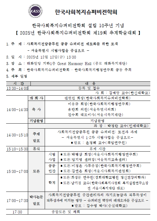 한편, 재단은 이러한 성과를 12일 오후 1시 30분 태화빌딩 Great Harmony Hall에서 열리는 ‘2025년 제19회 한국사회복지슈퍼비전학회 추계학술대회’에서 발표하고, 공공 슈퍼비전의 제도화 방안을 모색한다.