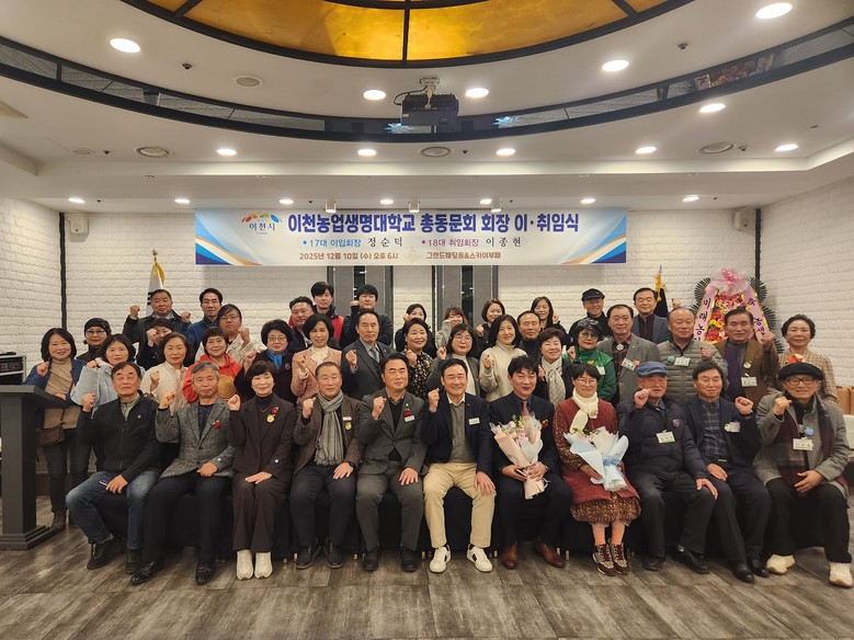 [이천시 세계타임즈=송민수 기자] 이천농업생명대학 총동문회는 지난 12월 10일 회원 50여 명이 참석한 가운데 제17·18대 회장 이·취임식 및 송년회를 개최했다고 밝혔다.