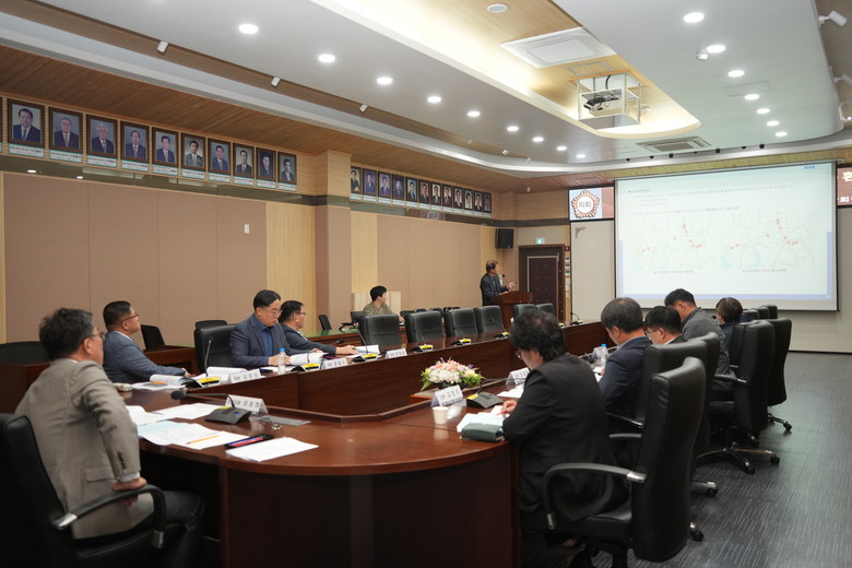보고회에는 이윤하 대표의원을 비롯해 김영주·최재영·최준구 의원과 외부 전문가 회원, 평택시청 및 평택도시공사 관계자 등 약 16명이 참석하였으며 연구용역을 맡은 대건이엔씨 대표로부터 연구용역 중간보고를 청취하고 질의응답 시간을 가졌다.