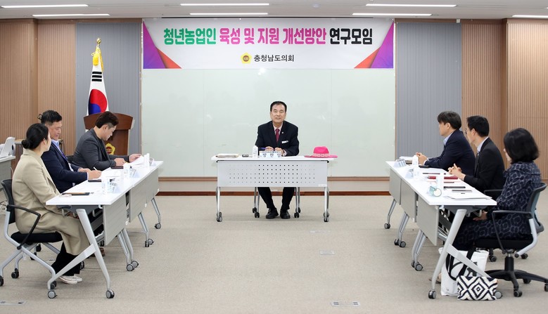 이날 회의에는 연구모임 대표인 방한일 의원(예산1‧국민의힘)을 비롯해 남성연 충남도 청년정책관, 조성만 충남도 청년여성농업인팀장, 김시환 충남농업기술원 정책지도과장, 강마야 충남연구원 연구위원 등이 참석했다.