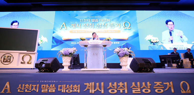[세계타임즈 백진욱 기자] 지난 22일 서울 광진구 워커힐호텔 비스타홀에서 신천지예수교 증거장막성전(총회장 이만희‧이하 신천지예수교회) 주최로 ‘계시 성취 실상 증거’ 말씀대성회가 열렸다.