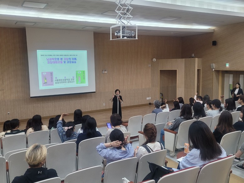 오늘(8일) 진행 중인 연수는 숭실사이버대 청소년상담코칭학과 겸임교수이자 ‘엄마반성문’ 저자인 이유남 교장 선생님을 강사로 모셔 <감정코칭 부모교육>이란 주제로 자녀코칭의 필요성과 실생활에서의 소통 스킬을 배워 자녀와 부모의 올바른 대화 방법을 배울 수 있는 강의로 목감지역에 있는 타학교 학부모님들도 참여할 수 있도록 하였다.