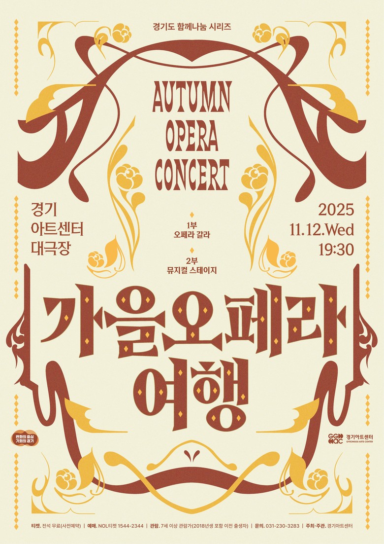 경기아트센터 관계자는 “도민들의 문화예술 관람 장벽을 낮추며, 누구나 쉽게 공연을 즐길 수 있는 ‘경기도 함께나눔 시리즈’로 도민들과 만나고 있다. 이번 공연을 통해 가을 밤, 음악과 이야기가 어우러지는 무대에서 예술이 전하는 따뜻한 감동을 함께 나누길 바란다”고 전했다.