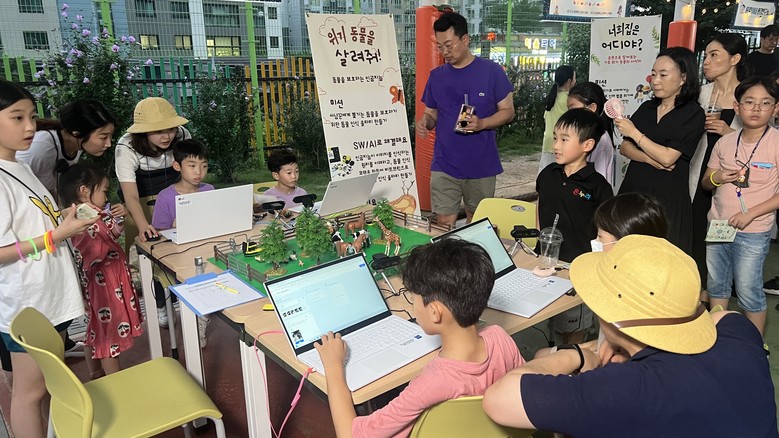 대구교육대학교 정보교육 네트워크 사업단 및 대구 관내 인공지능을 연구하는 대구 컴퓨팅 교사 연구회(CASD), 대구교육대 인공지능 봉사동아리 학생들과 협력하여 마련된 이번 디지털 플리마켓은 ‘도서관에 찾아간 아이(AI)’라는 주제로 실시되었으며, 인공지능(AI)과 독서몰입교육을 통해 기후위기 및 멸종동물 문제를 알아보고 해결하는 10개의 체험 프로그램을 플리마켓 부스 형태로 진행했다.