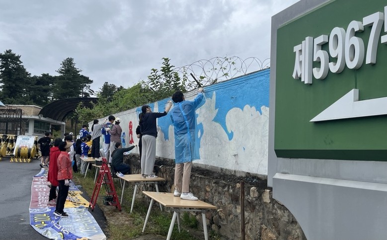 이번 벽화그리기 활동은 5967부대에서 직접 요청받아 참가 희망 학생 50명의 학생이 파주읍 주민단체와 함께 군인 캐릭터를 이용하여 대한민국 국토를 수호하는 내용을 담아 제작하였다.