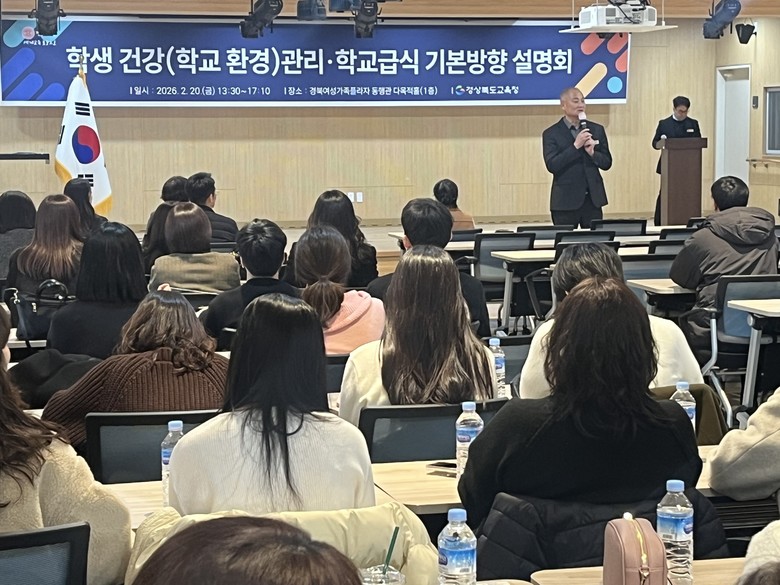 [경북 세계타임즈=한윤석 기자] 경북교육청(교육감 임종식)은 20일 예천군에 있는 경북여성가족플라자 동행관에서 도내 교육지원청 학교보건.환경 업무 담당자 110여 명을 대상으로 ‘2026학년도 학생 건강.학교 환경관리 기본방향 설명회’를 개최했다고 밝혔다.