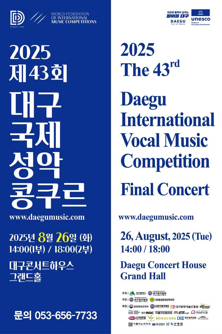 43회를 맞은 ‘2025 대구국제성악콩쿠르’는 지난해 6월, 국내 성악 단일 분야에서 유일하게 국제음악세계콩쿠르연맹(WFIMC) 인증을 획득하며 국제적 권위를 입증했다.