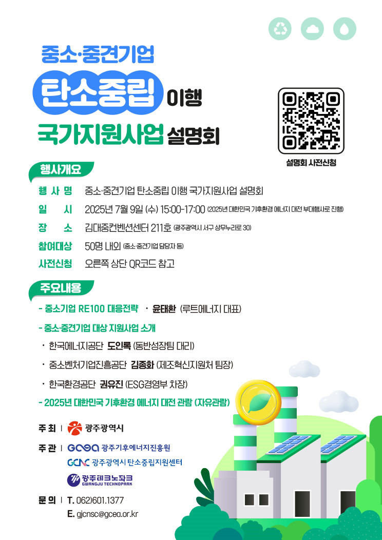 이번 설명회는 광주지역 중소·중견기업들이 자발적인 온실가스 감축에 나설 수 있도록 정부의 탄소중립 지원사업을 소개하는 자리다. 기업의 부담을 덜고 실질적 이행을 유도하기 위한 정보 제공이 목적이다.