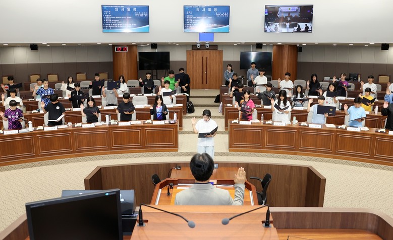 이날 행사에서 정산초등학교 학생들은 의장 선거에 출마한 후보들의 정견 발표를 듣고 직접 투표를 통해 의장을 선출하는 등 의정활동의 핵심 과정을 체험했다.