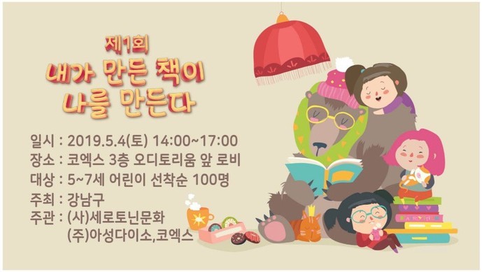 균일가 생활용품점 (주)아성다이소의 후원으로 4일 오후 2시, 서울 삼성동 코엑스 오디토리움 로비에서 강남구(구청장 정순균)와 (사)세로토닌문화가 주관하는 '제1회 내가 만든 책이 나를 만든다' 행사가 개최된다.