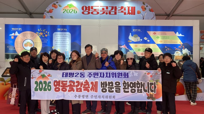 [중구 세계타임즈=이채봉 기자] 대전 중구 태평2동(동장 김상균)은 태평2동 주민자치위원회(위원장 최락희)에서 충북 영동군 영동천 하상주차장 일원에서 열린 ‘2026 영동곶감축제’를 방문해 도농 상생 교류 활동을 펼쳤다고 밝혔다.