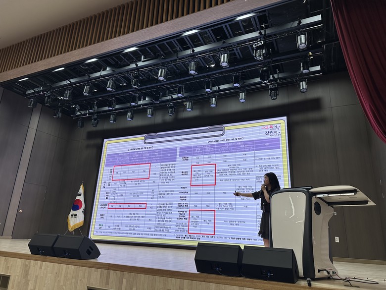 [강원도 세계타임즈=김민석 기자] 강원특별자치도교육청(교육감 신경호)은 13일(금) 13시 30분 도교육청 6층 대강당에서 고등학교 교감, 업무담당교사, 교육지원청 장학사 등 220여 명이 참석한 가운데 2025 고등학교 학생평가 및 최소 성취수준 보장지도 운영, 학교생활기록부 기재 유의사항 등에 대한 공동 연수를 개최했다.