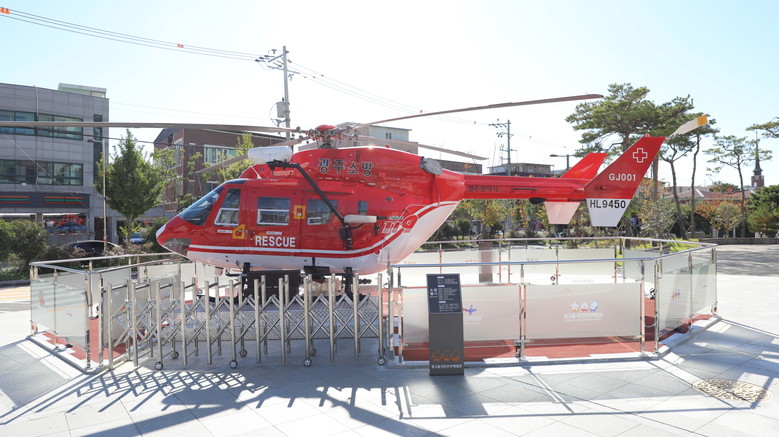 [광주 세계타임즈=손권일 기자] 광주광역시빛고을국민안전체험관은 노후 광주소방 1호 헬기(BK117B-2)를 활용한 전시‧체험시설을 1층 야외광장에 마련, 11월부터 전시‧운영한다.