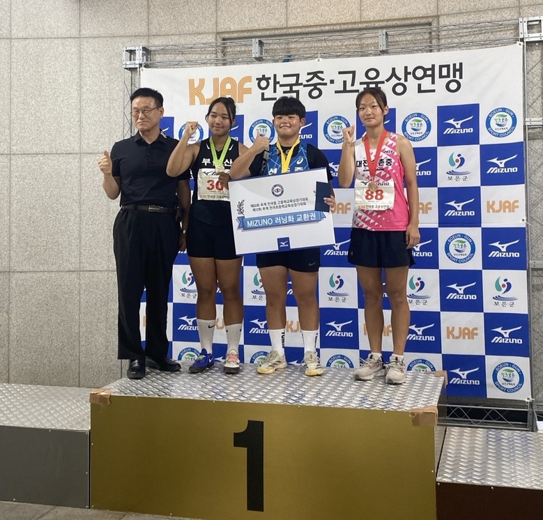 아울러 여중부 원반던지기에서 장효민 학생은 자신의 종전기록 30.69m를 뛰어넘은 31.90m의 기록으로 동메달을 차지했다.