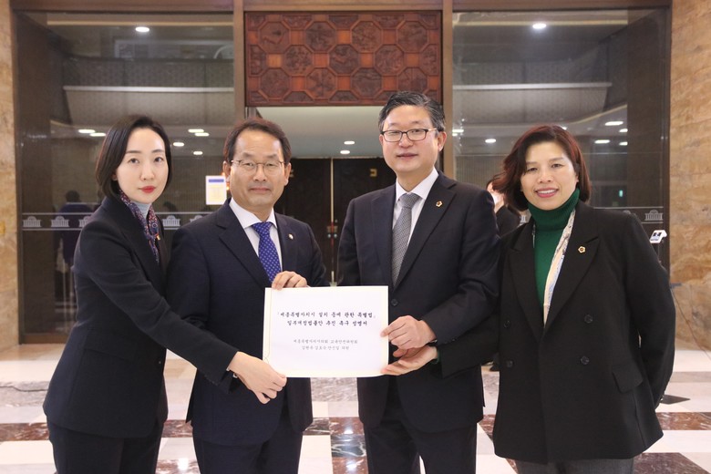 -지방교육재정교부금, 현행 23년에서 30년까지 교부 기간 연장 절실 강조 [세종 세계타임즈=이채봉 기자] 세종시의회 교육안전위원회 소속 김현옥‧김효숙‧안신일 더불어민주당 의원들이 국회를 찾아 세종시법 일부개정 필요성에 대해 피력했다.