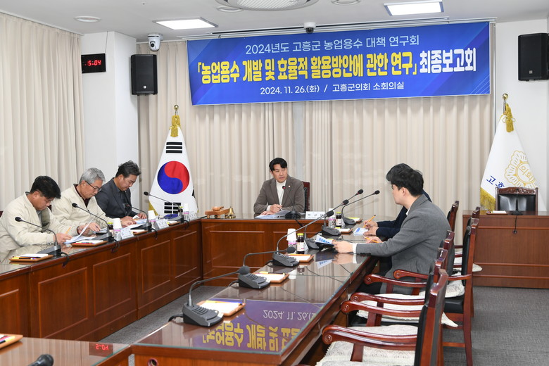 한편, 이날 연구용역 최종보고회를 마친 ‘고흥군 농업용수 대책 연구회’는 오는 12월 중 연구 활동 결과보고서를 마무리하고, 추후 연구성과물을 공유할 계획이다.