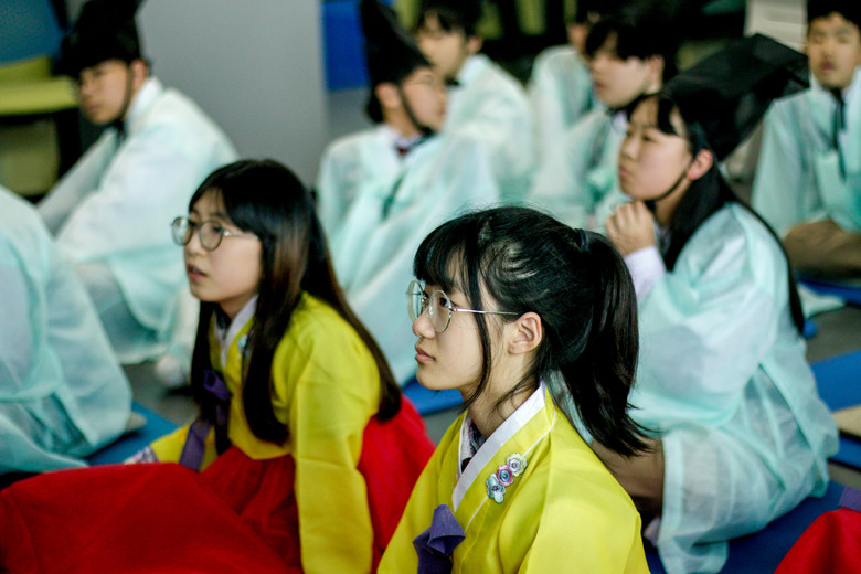 [파주시 세계타임즈=송민수 기자] 파주중학교(이혁규 교장)는 인근 파주향교와 연계하여 찾아가는 인성예절교육을 4월 18일에 실시하였다. 1학년 전체 학생이 파주향교의 역사와 예절의 필요성을 이해하고 한복 바르게 입기와 인사예절, 다도예절 등을 배우고 체험하는 시간을 가졌다.