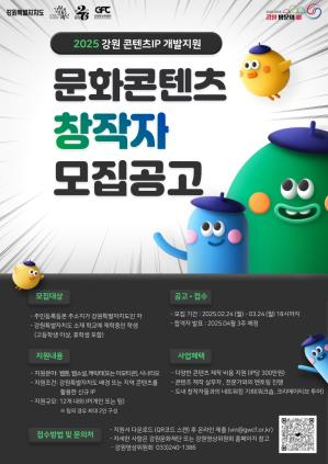 신청 기간은 2025년 2월 24일부터 3월 24일 18시까지다. 자세한 내용은 강원문화재단 홈페이지(gwcf.or.kr)에서 확인할 수 있다.