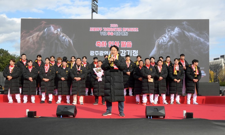 강기정 광주시장은 “한강 작가 노벨문학상 수상 등 광주에 기쁜 일이 계속되고 있는 가운데 KIA 타이거즈 한국시리즈 우승은 ‘광주의 힘’이다”며 “선수 개인의 영광을 넘어 광주의 전반적인 에너지를 끌어올리고 활력을 더했다. 내년에도 광주시민들과 함께 뜨겁게 응원하겠다”고 밝혔다.