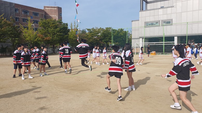 만국기 아래에서 북놀음반의 흥겨운 북소리에 맞춰 학급단체 경기 중심으로 이루어지는 체육 한마당을 통해 학급 단합의 기회를 될 것이다.