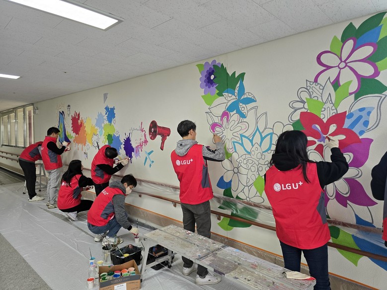 도서관이 설치된 학교에는 아이들이 희망찬 꿈을 꿀 수 있도록 LG유플러스 임직원들이 봉사활동으로 벽화를 그리는 활동도 함께하고 있다.