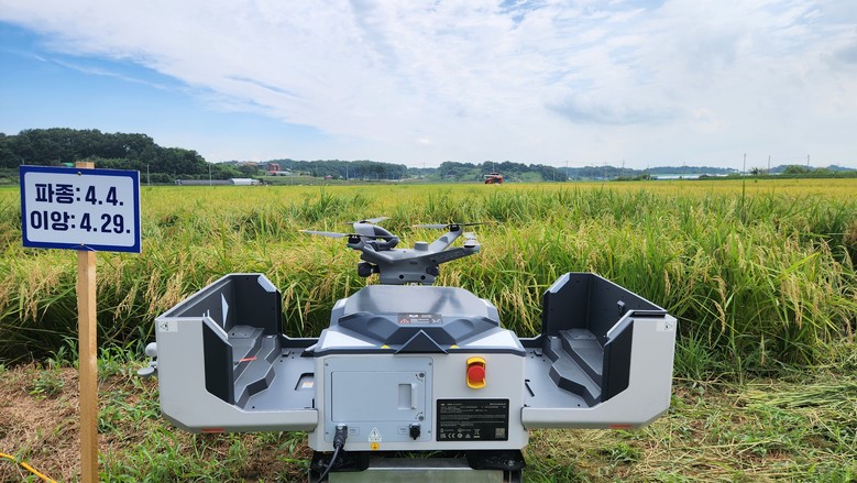 이 같은 상황에 도 농업기술원이 등장시킨 드론은 스테이션을 스스로 이륙해 논 구석구석 미리 정해둔 경로를 비행한다.